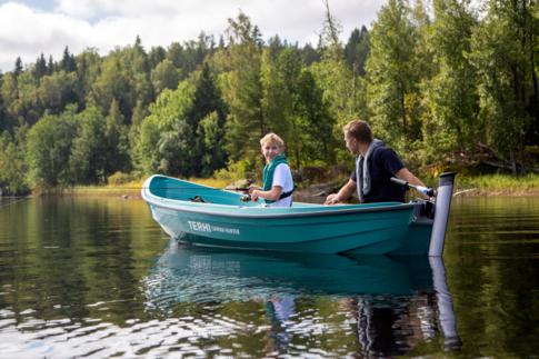 Terhi 440 is a spacious rowboat that is most often used together with a small outboard engine. Thanks to its wide hull the boat is extremely stable and has great carrying capacity. It works especially well as a versatile allrounder for the summer home, or for diverse transportational needs on calm waters.