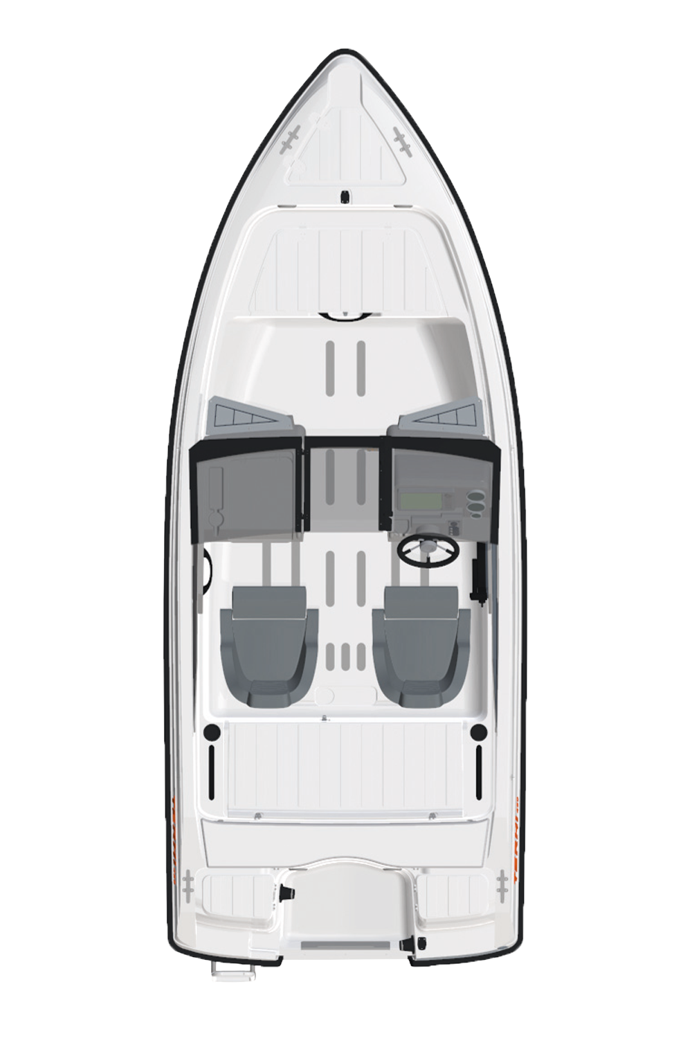 Därutöver har pulpeterna ett 12V eluttag och på instrumentpanelen finns plats för en 9” kartplotter. Som tillbehör finns att få en solbädd som utan dynor även kan användas som kastdäck för fiske.