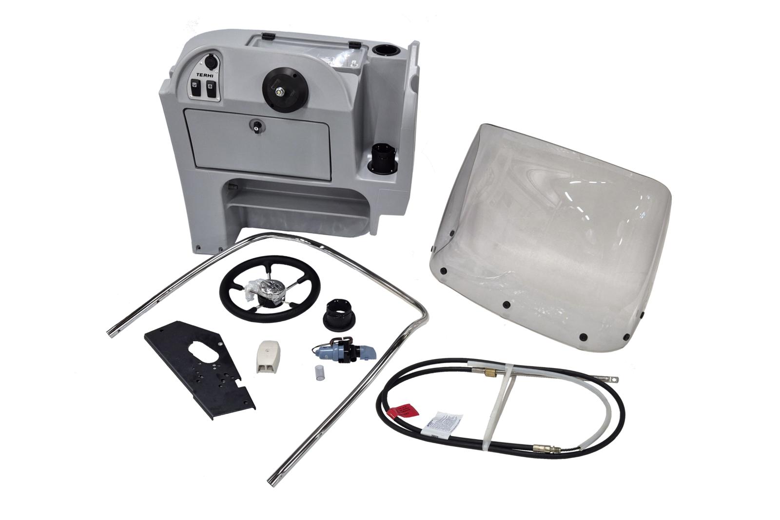 Med detta konsolpaket du kan konvertera din Terhi Nordic 6020 båt (fr.å.m modellår 2016) till en rattstyrbar båt! Paketet innehåller delar för monteringen av en komplett konsol med elektrisk utrustning. Ytterligare paketet innehåller vindrutan och polerade vindrutaräcket.